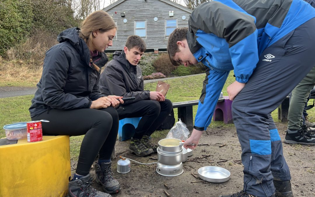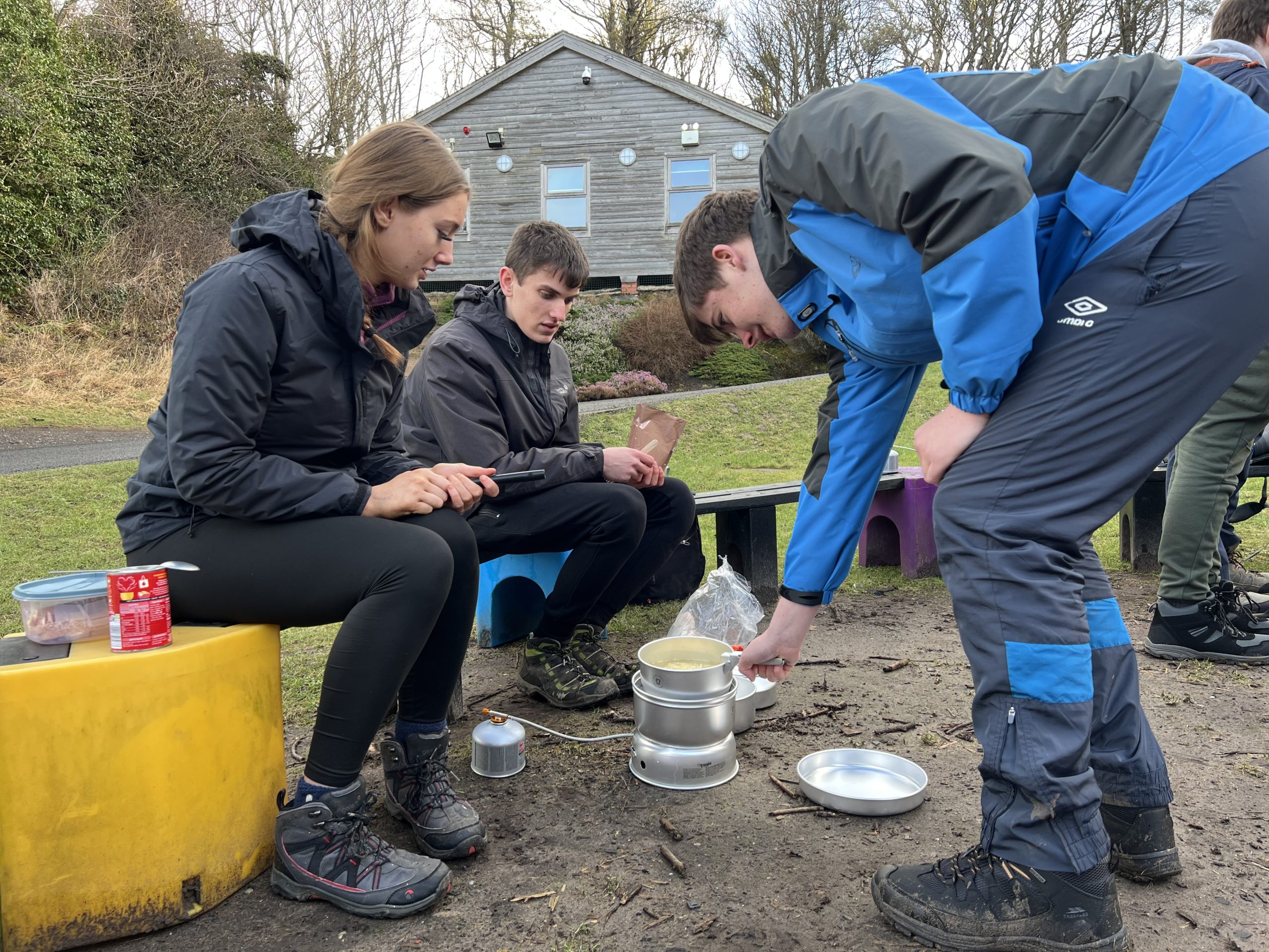 young people cooking on a trangia